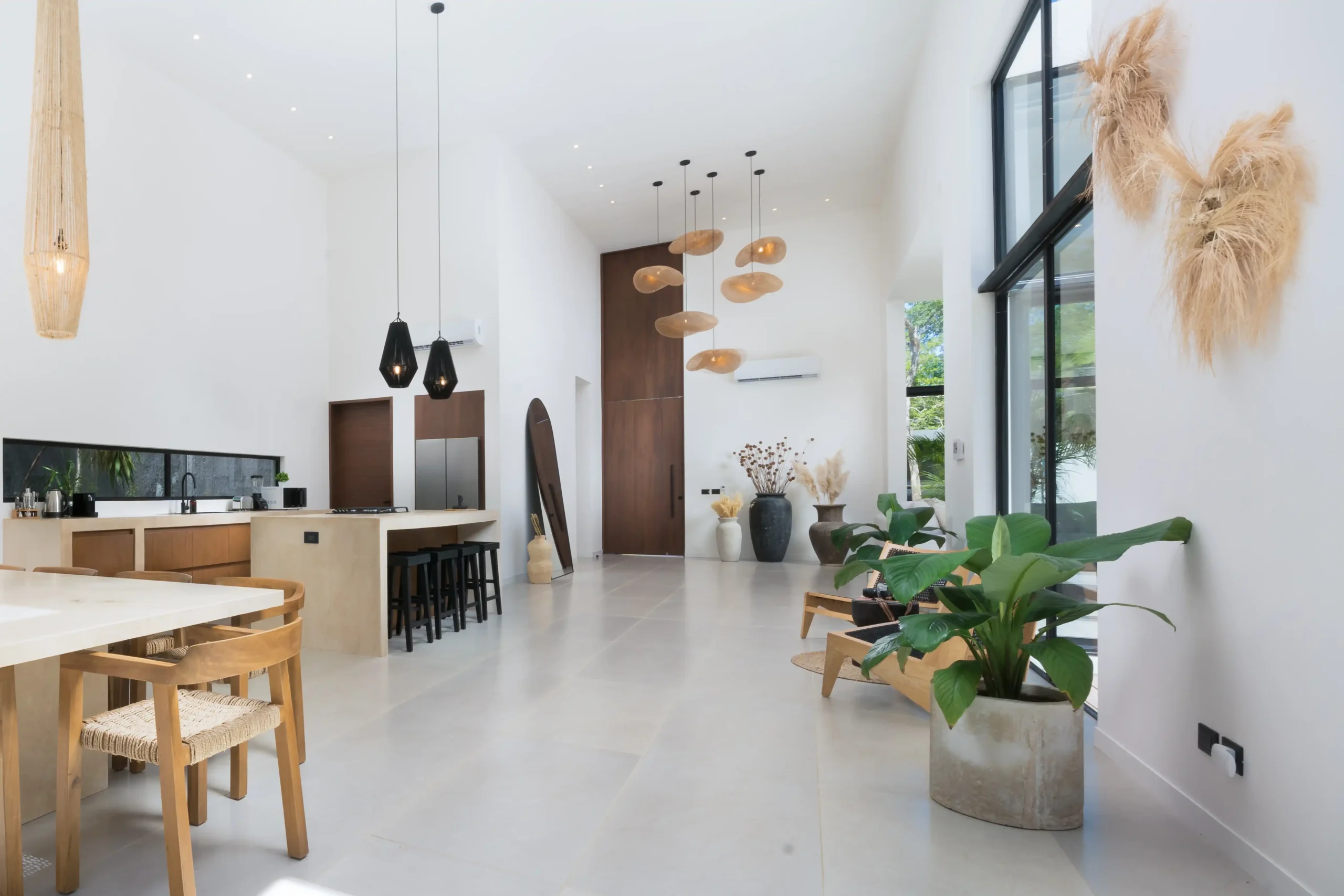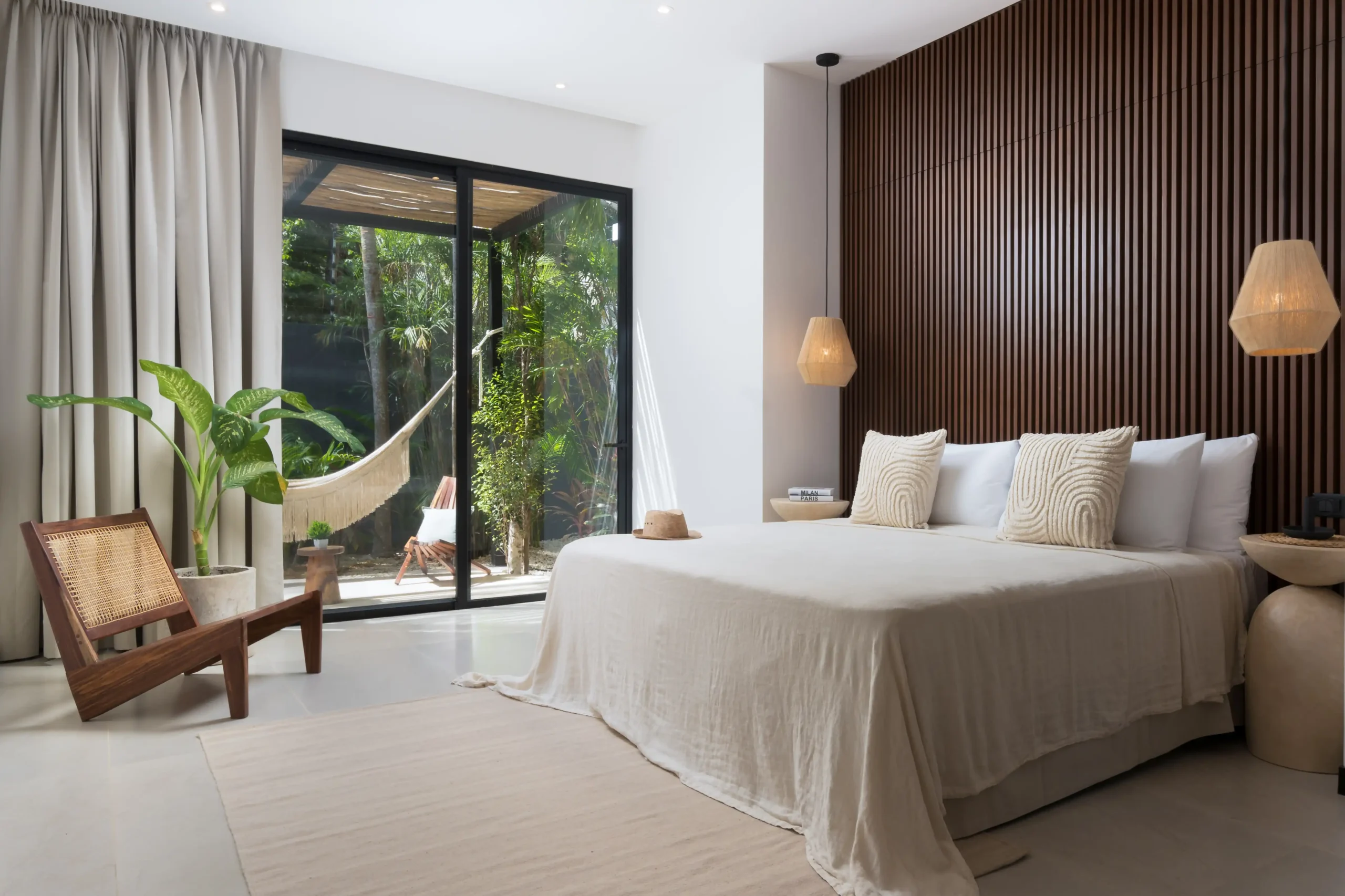 This exquisite home features expansive indoor and outdoor living spaces that flow effortlessly together, creating a serene connection between nature and design. The residence boasts multiple bedrooms and a private studio, each thoughtfully designed to maximize light, privacy, and comfort. With luxurious details throughout—such as high-end finishes, artisanal touches, and an inviting pool area—CASA COLETTE provides the perfect setting for both relaxation and entertaining.