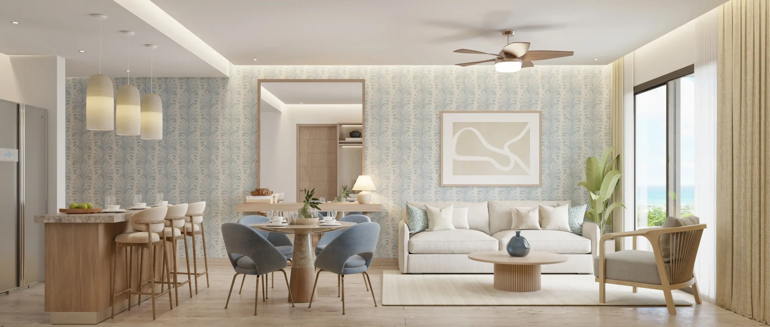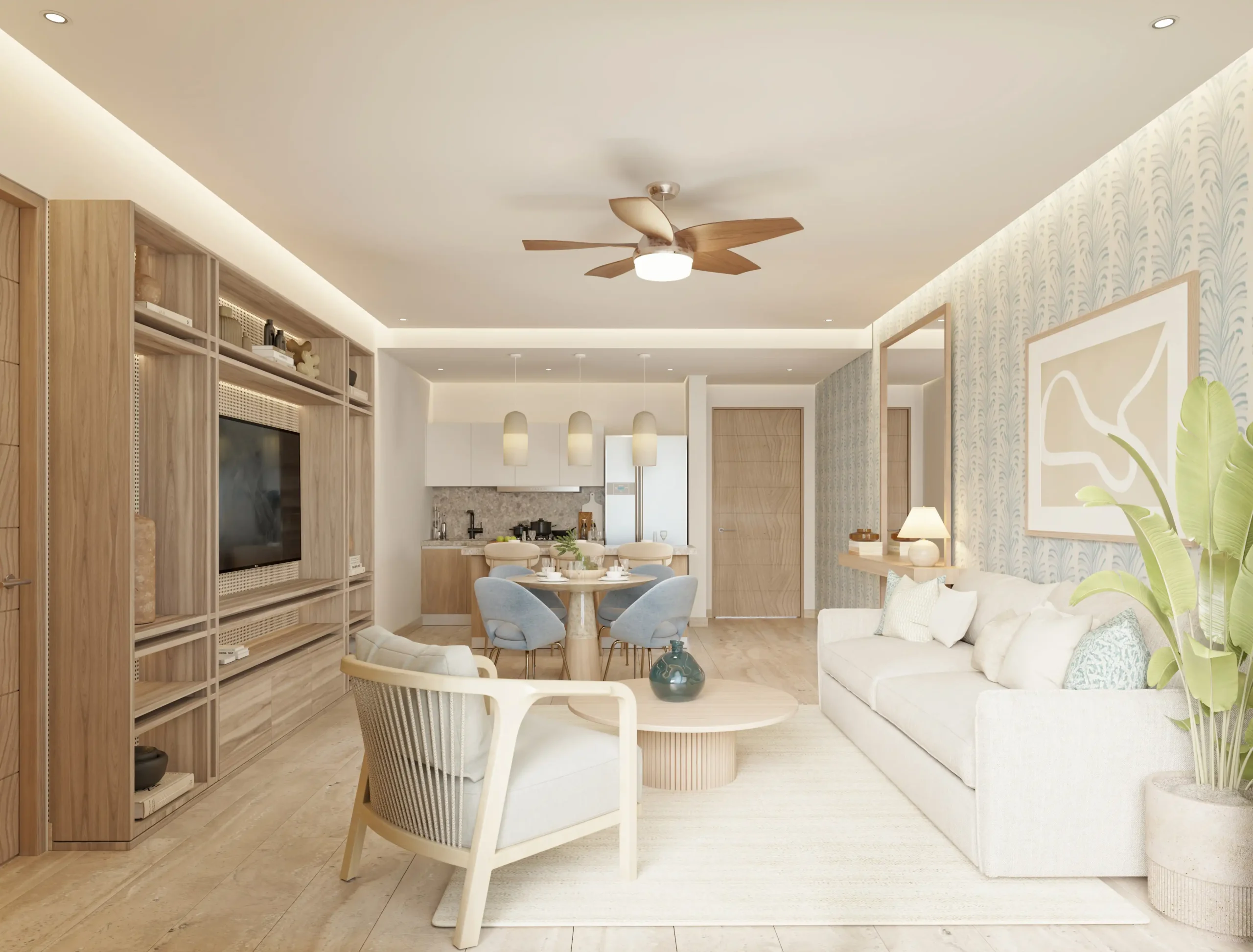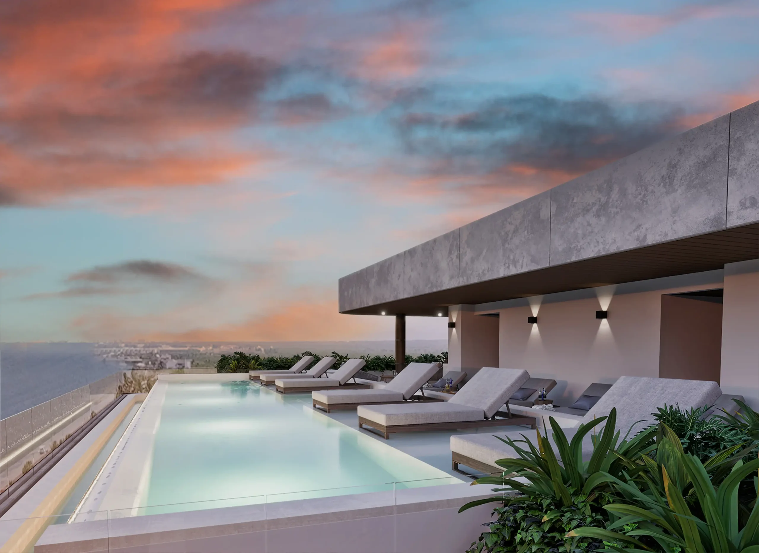 The concept of Village Blu is built around total enjoyment: just steps from the beach and featuring amenities such as a panoramic pool, lounge terraces, a rooftop bar, and 24/7 security. From the rooftop, residents can admire breathtaking views of the Caribbean and the most stunning sunsets, in a space designed for relaxation and social gatherings. With private parking and smart access, every detail ensures comfort and convenience.